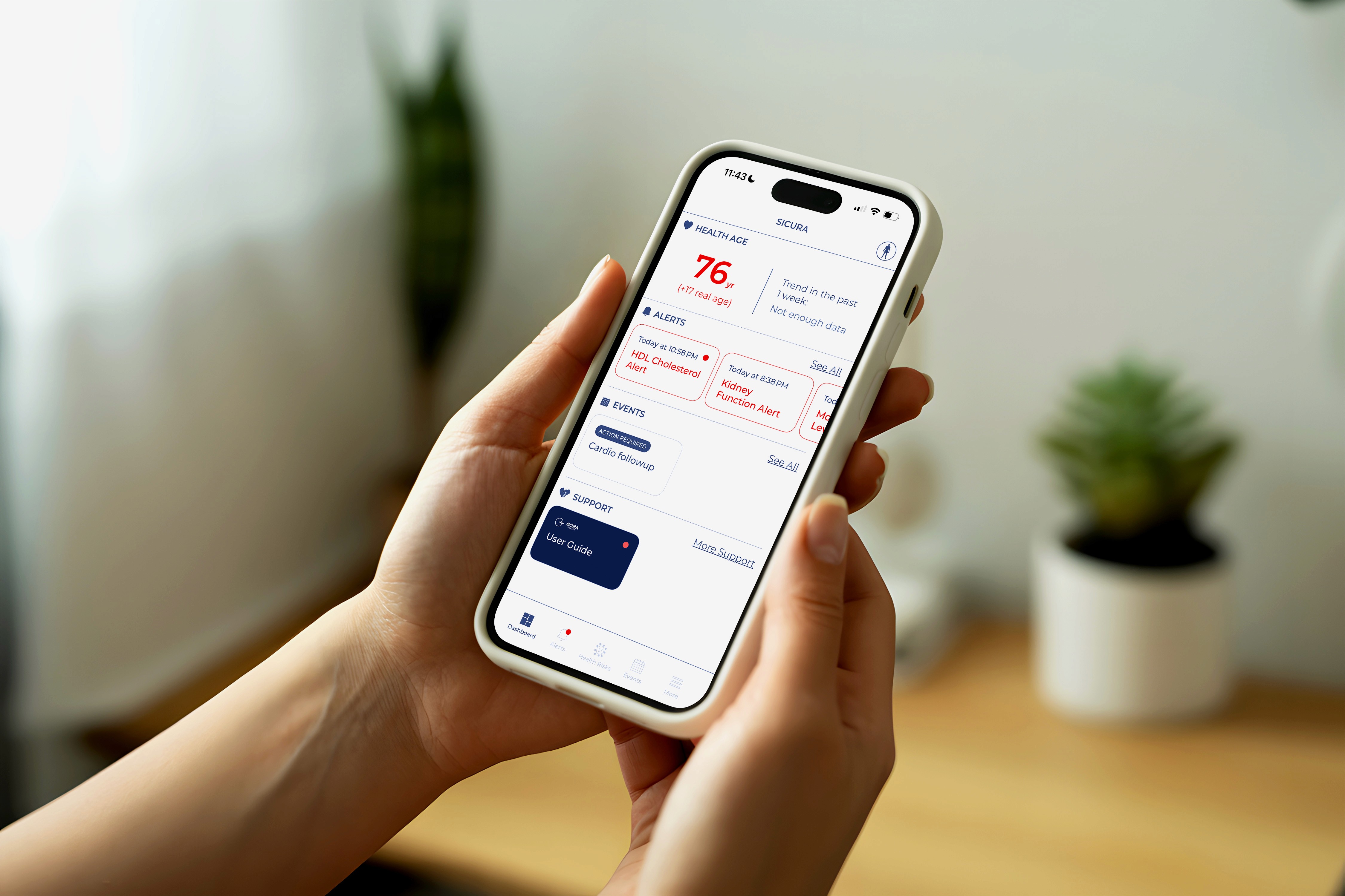 Sicura analyzes long-term patterns in your labs, vitals, sleep, heart rate, and activity to calculate your Health Age and highlight what may need attention.
